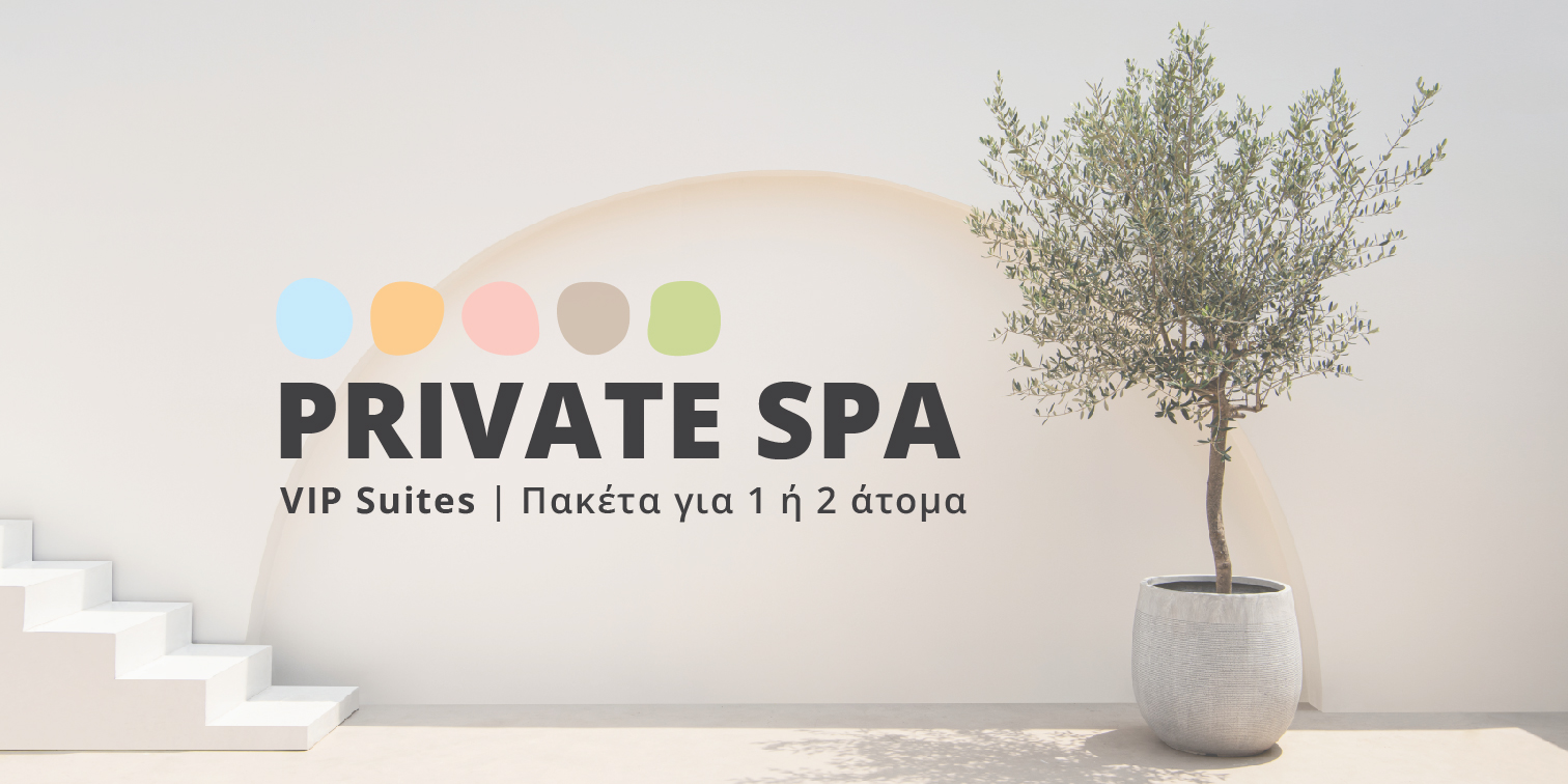 Ένας κόσμος απόλυτης χαλάρωσης, αναζωογόνησης και ευεξίας σας περιμένει στη VIP Σουίτα του Private Spa μας. Εδώ θα έχετε την ευκαιρία να επιλέξετε το πακέτο που σας ταιριάζει ή ακόμη και να το προσαρμόσετε στις δικές σας ανάγκες. Βιώστε μια ολοκληρωμένη εμπειρία ευεξίας μέσα από προσεκτικά επιλεγμένες αναζωογονητικές θεραπείες που πραγματοποιούνται σε ένα ήρεμο, μοντέρνο και καλαίσθητο περιβάλλον από το έμπειρο προσωπικό μας. Δείτε αναλυτικά τις υπηρεσίες και τα πακέτα μας (που ισχύουν για 1 ή 2 άτομα) και ανακτήστε την ισορροπία & την αρμονία σας!
